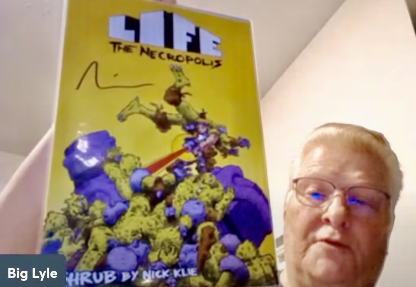 My buddy Lyle Hopson aka Big Lyle did a video hangout with Comic Collector Geek and others on Youtube, and not only showed off my latest comic, but dug through the boxes and also showed off my first comic, Life The Necropolis: Shrub! Check out the whole interview HERE for some comic collector fun!