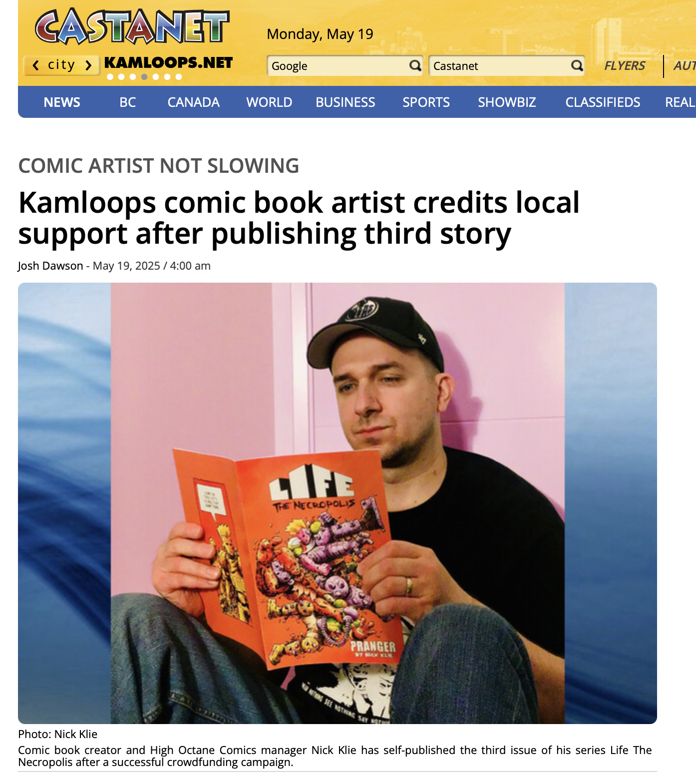 After the success of my first Kickstarter, I did an interview with my local news to announce the release of my new printed comic book, Life The Necropolis: Pranger!