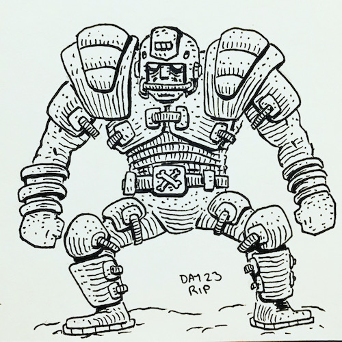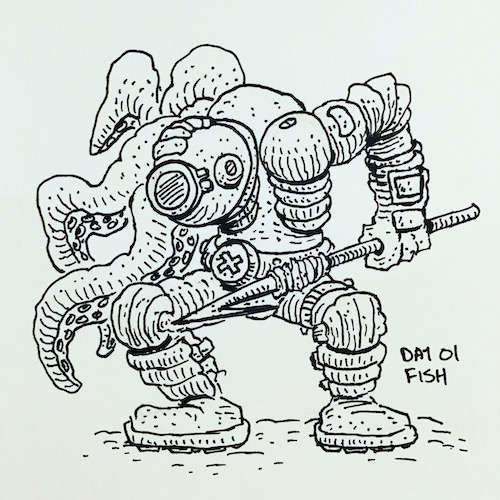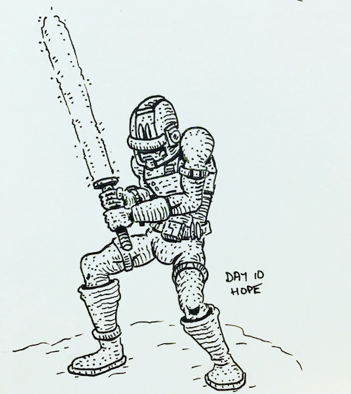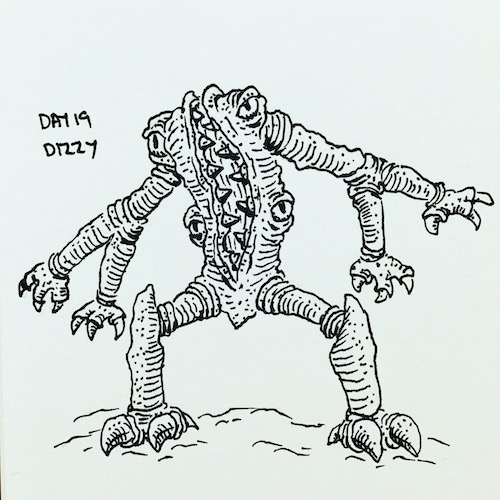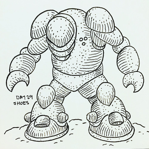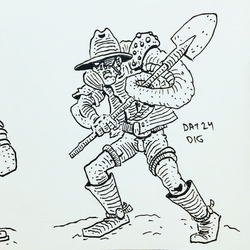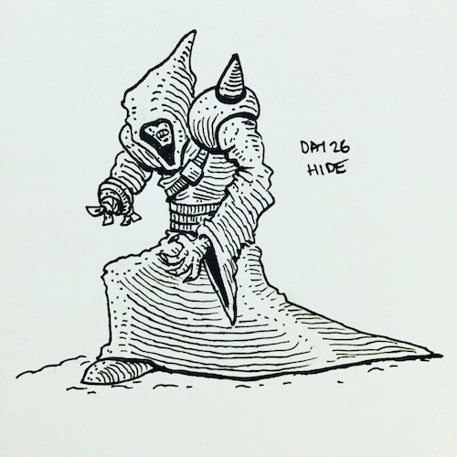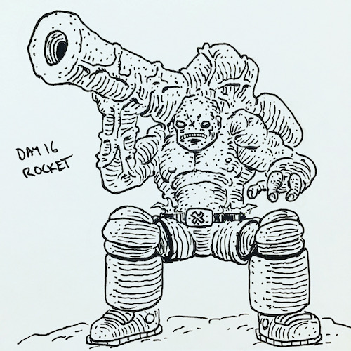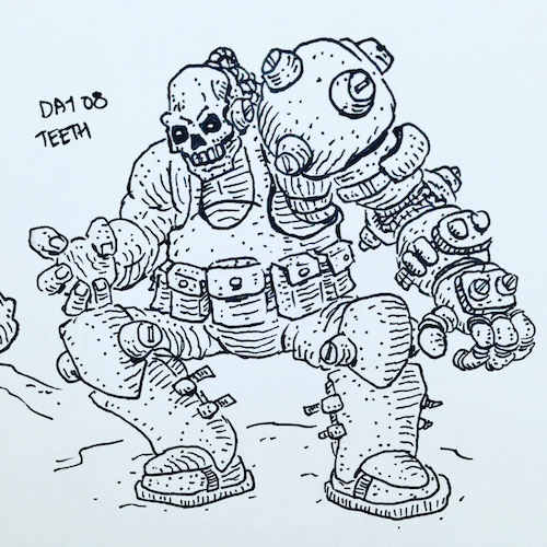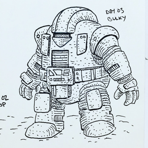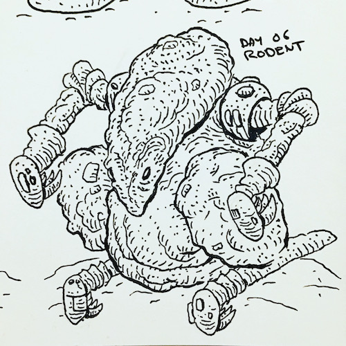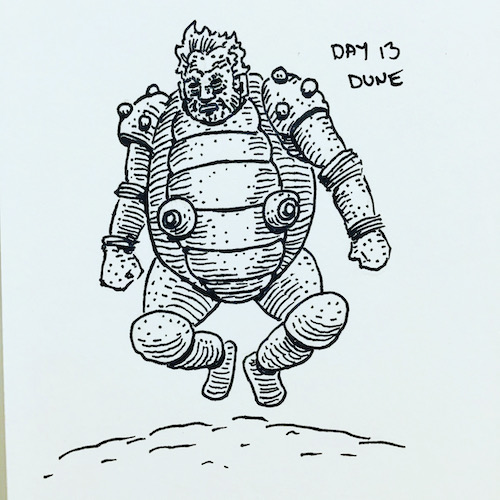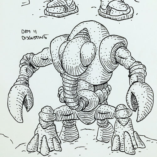 This year I had some specific goals in mind. I wanted to work on character designs with odd body shapes and stances. I also wanted to work on my Moebius-style hatching using a pen instead of thicker brush pen, focusing on amount, length, curve, direction, etc, of the lines.