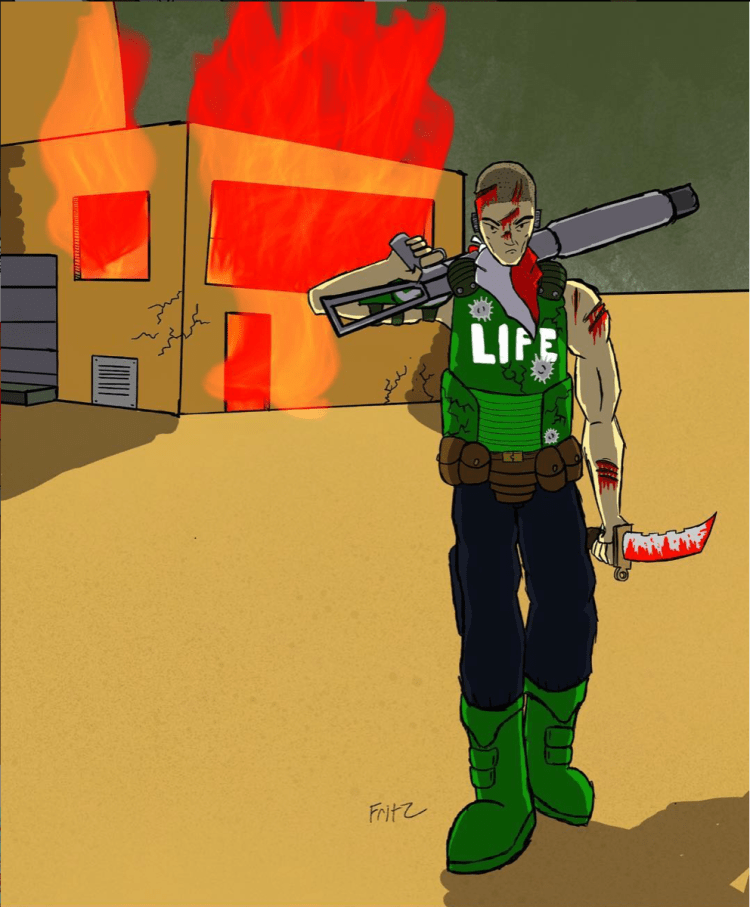 This was done by Mark Higgins and posted to his Instagram @fritzatomicart . I don’t personally know Mark, so I had no idea this was coming and was pleasantly surprised when he sent it to me! Once again, I love other people’s interpretations of Life, and the way they draw his outfit. Thanks again, Mark!