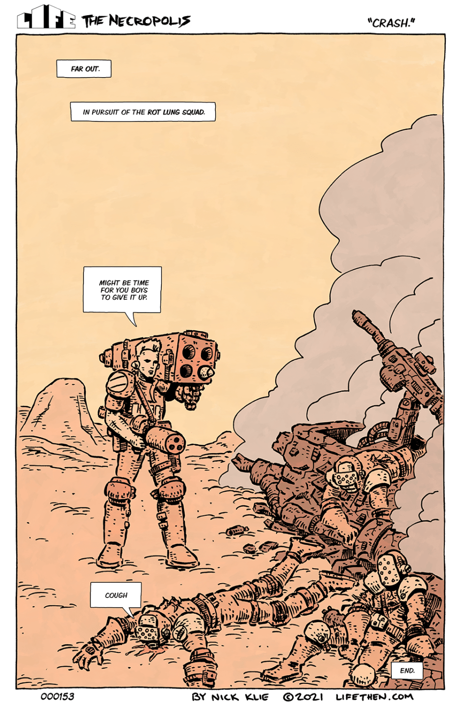 I was running late and realized I wasn’t going to finish the 5-panel comic I had pencilled for this week, so I powered through this 1-panel page instead. I prefer this one anyway.