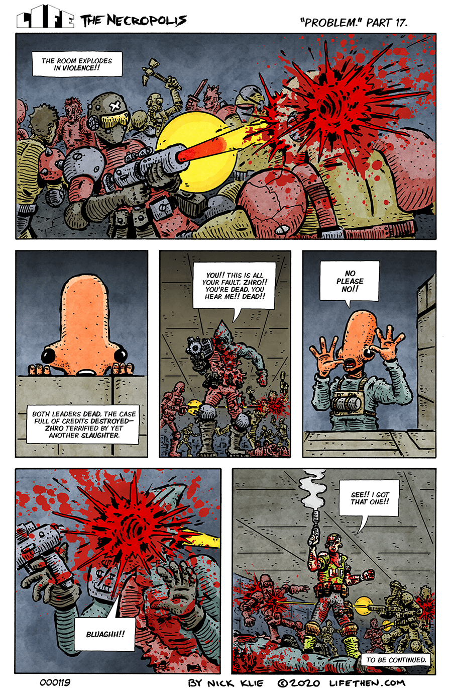 You’d be amazed at how long all that splatter took. Drawing all the characters took some doing, but I was shocked at how long all the splatter took.