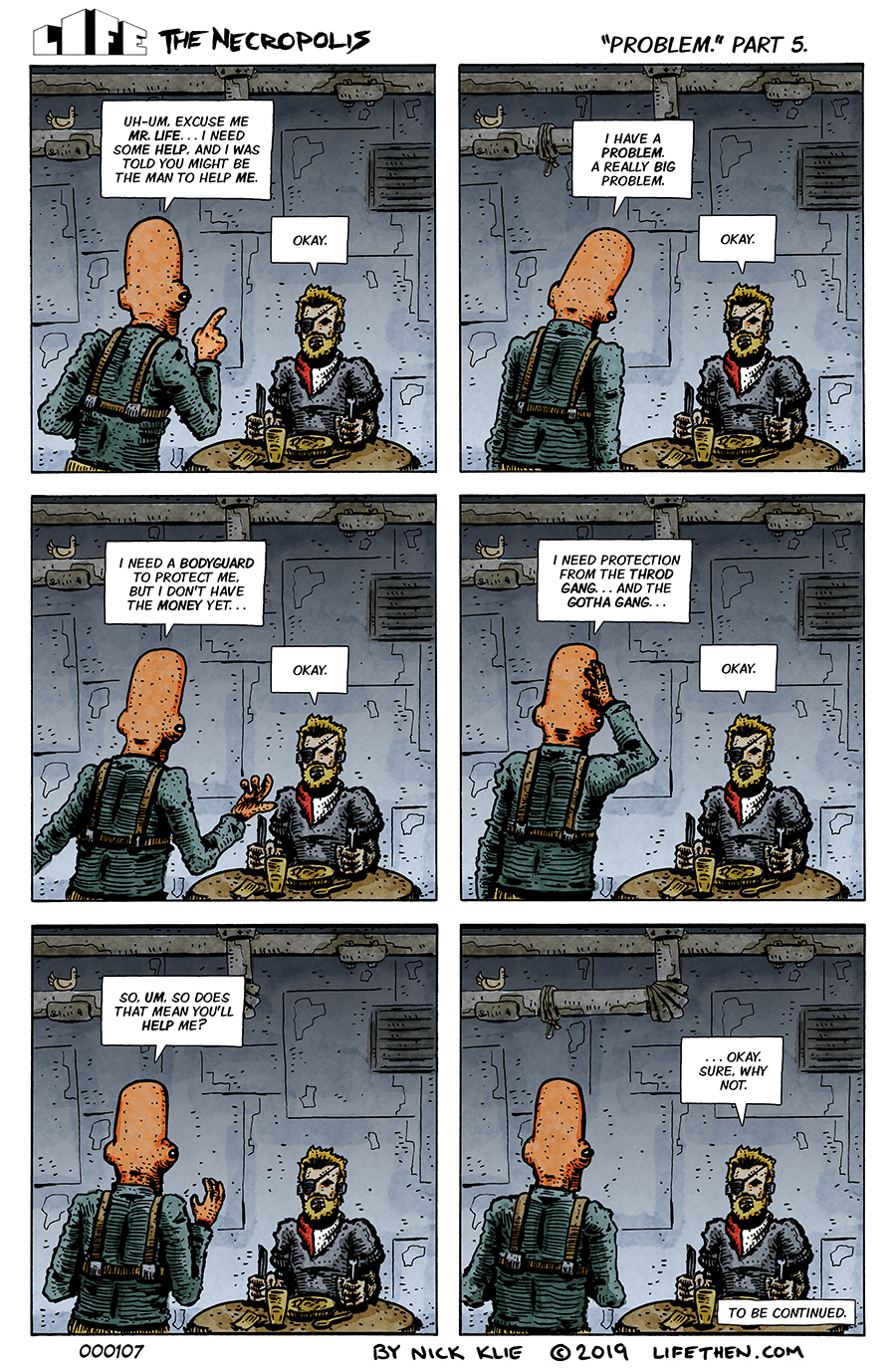 Don’t get me wrong, It was always going to be a lazy-repeating-panel-joke page, but things got a bit sloppy. Or sloppier depending on how you feel about my art.