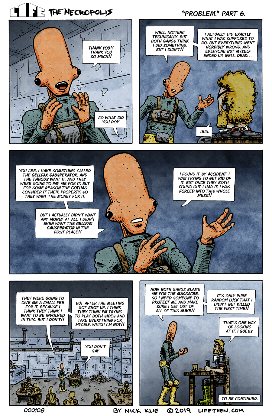 I’ve been cheating a lot lately and not drawing a lot of backgrounds, but they would have mostly gotten covered up with dialogue anyway in this page, so don’t get too mad at me.