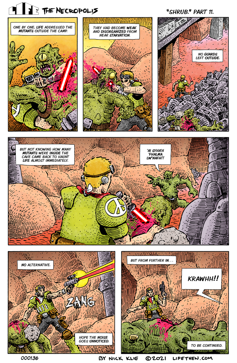 Once I finally got to this page, I realized I really hadn’t nailed down exactly how I wanted the mutants to look. Most of them are just okay, but those first two mutants turned out just right.