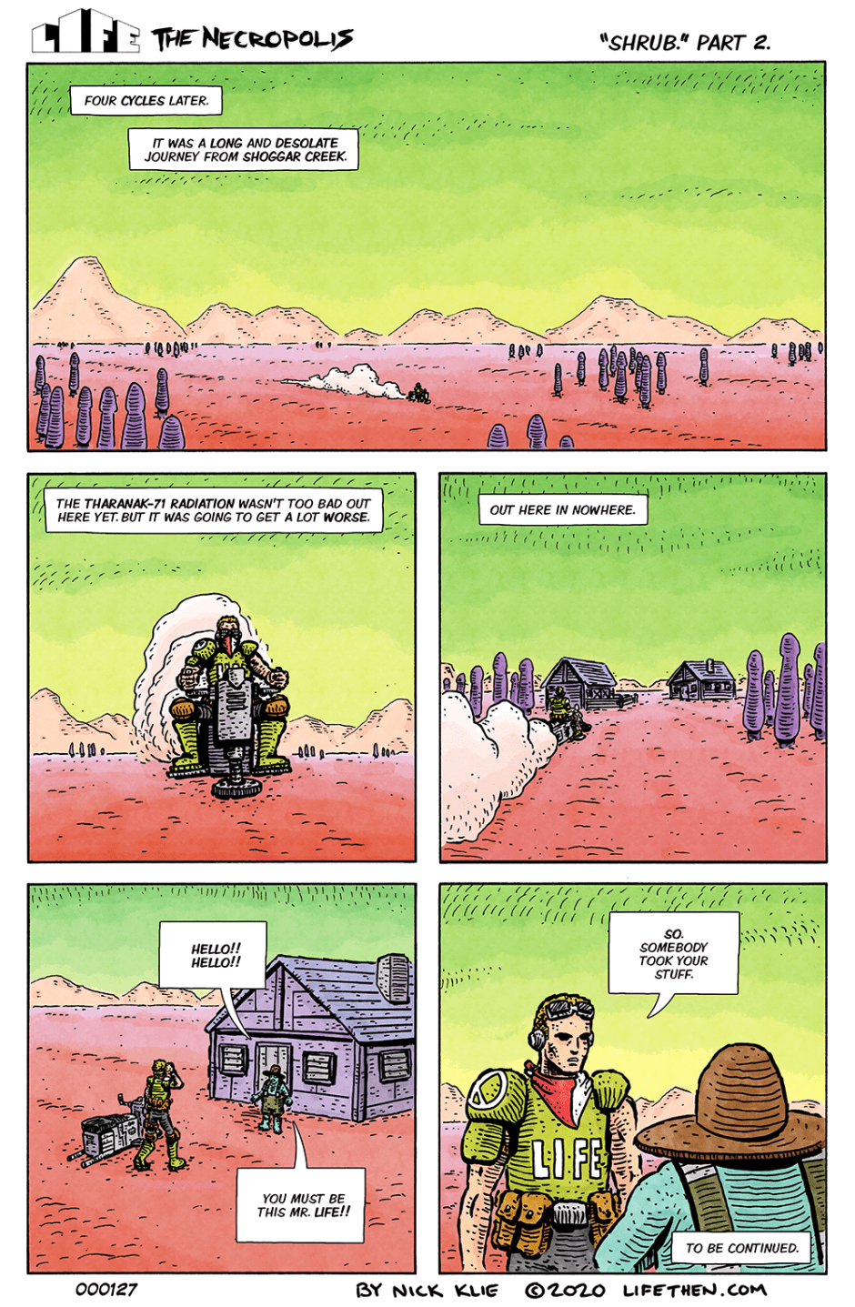 1. I spent DAYS colouring this. I restarted 2 or 3 times, each time trying new techniques and new brushes to try to unlock the colouring secrets of one of my favourite Moebius short stories “It’s A Small Universe”.