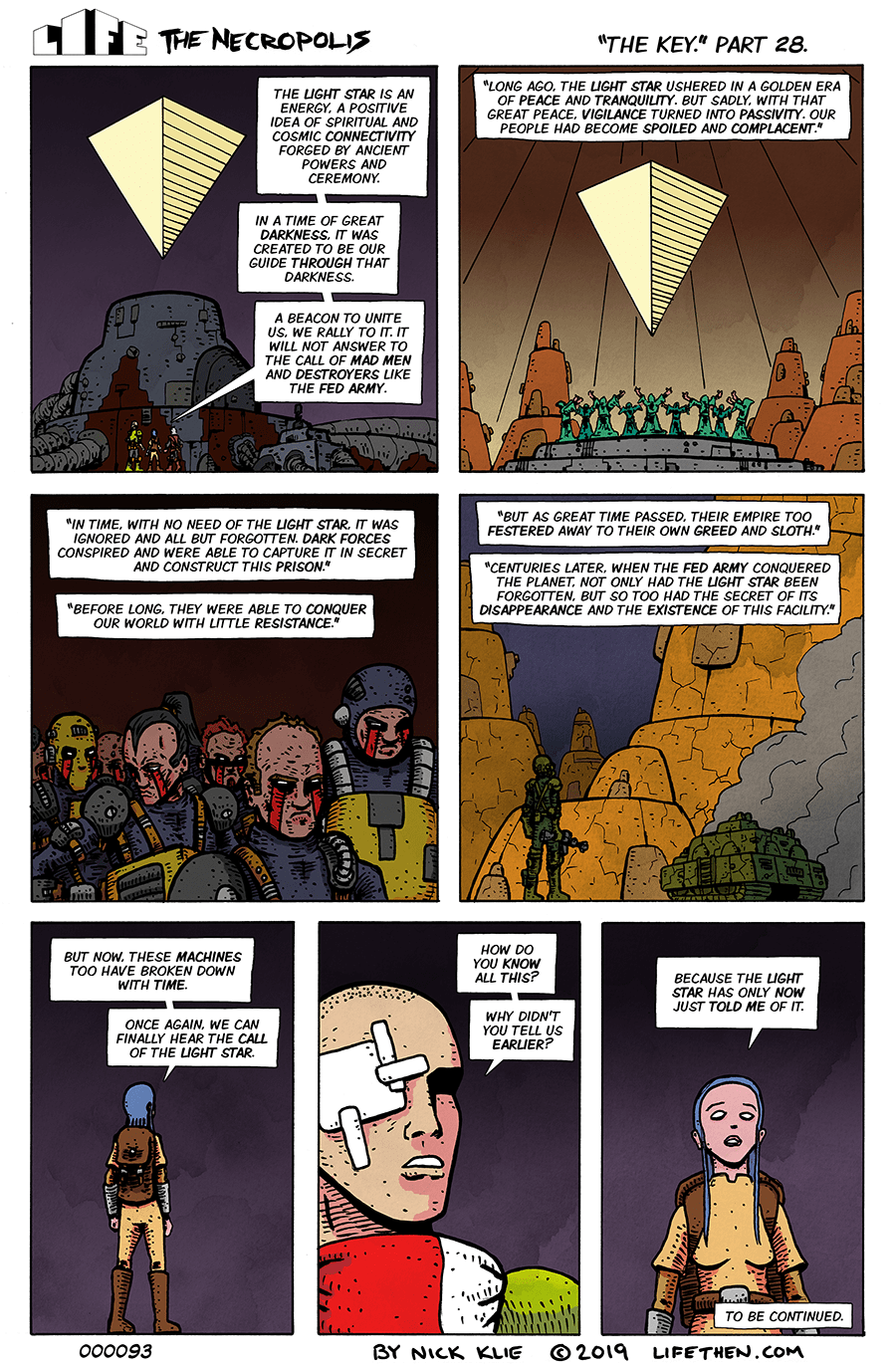 Oh, another also: I decided to draw Life’s nose in panel 6 as more than just one line with a triangle at the bottom. Meh.