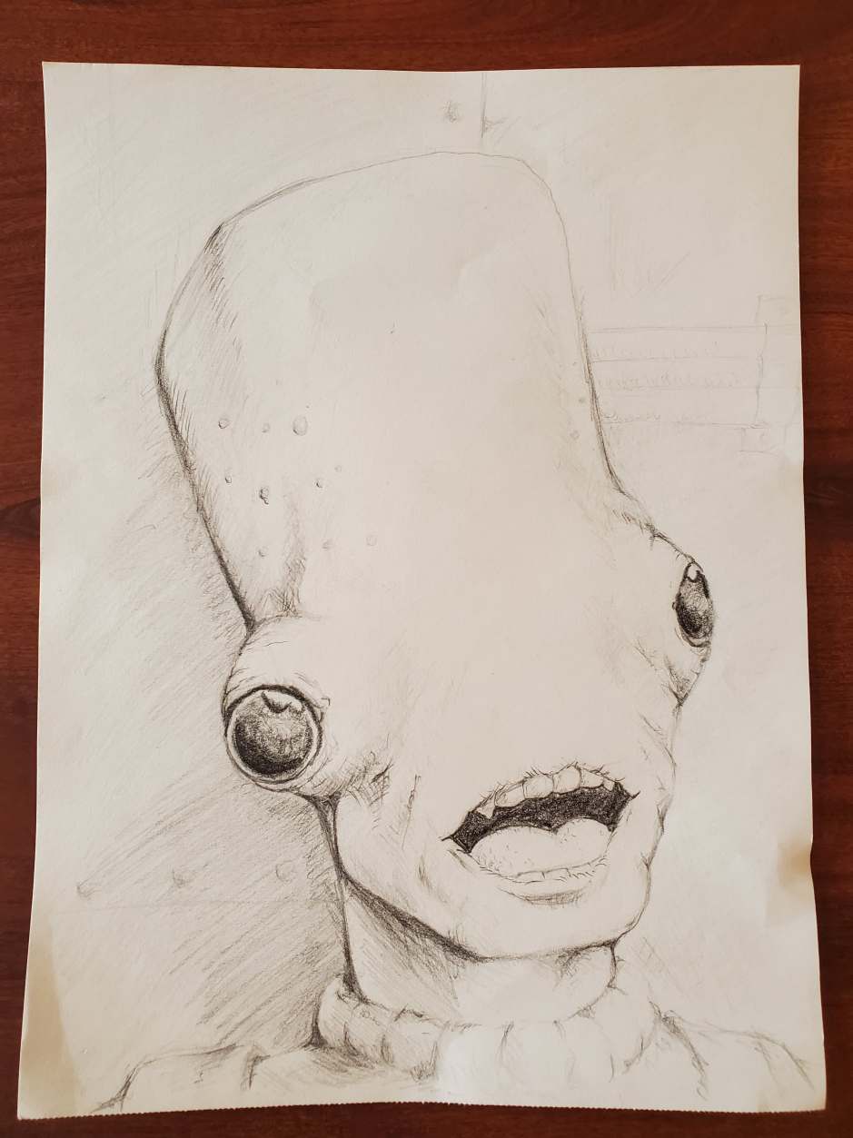 I printed a black and white picture of the original cover, lightboxed the overall characters, and then did my own character designs and embellishments.